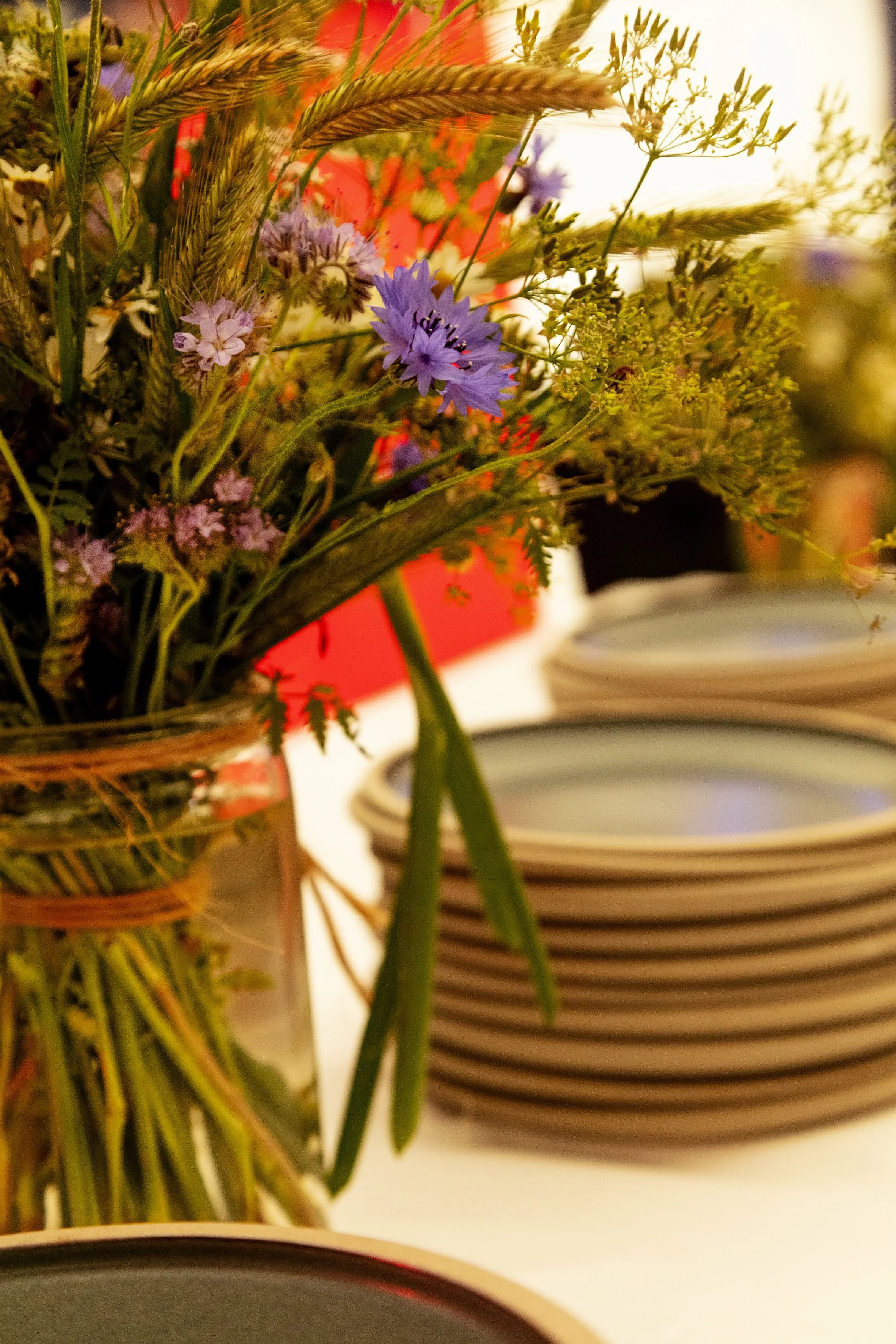 Det hele bliver serveret i det hyggelige cirkustelt på festivalspladsen, med græs under fødderne.